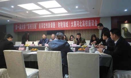 “百校百题”应用型创新课题(财税领域)大赛是为了加快实施创新驱动发展战略、深化高校转型改革、推动应用型人才培养、促进产教研结合、校企合作,经教育部备案、教育部学校规划建设发展中心主办、燕园智库联合中国国际经济交流中心、中国财政科学研究院、国家税务总局税收科学研究所承办的全国高校校企合作“双创”实战演练主题竞赛。第一届大学“百校百题”应用型创新课题(财税领域)大赛启动仪式已于2016年12月14日在北京召开,为了保证大赛的顺利进行,河北赛区秘书处特于2017年1月7日在石家庄裕华大酒店“百校百题”大赛河北赛区座谈交流会。